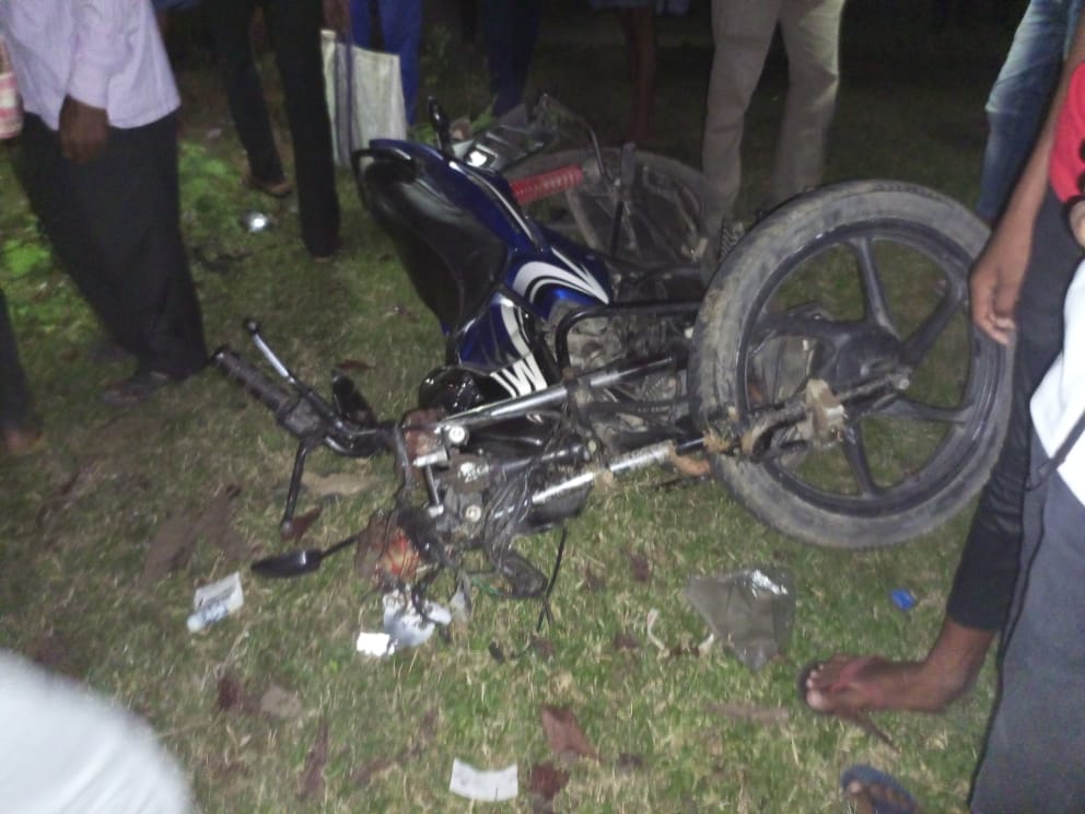 Accident : पिंड्राजोरा थाना क्षेत्र के एनएच 32 पर कार की टक्कर से बाइक चालक व महिला की मौत