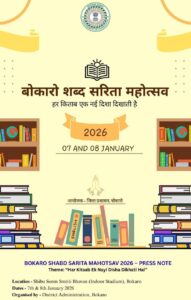 Bokaro News: जिले में साहित्य, संस्कृति एवं वैचारिक चेतना को सशक्त करने के उद्देश्य से बोकारो शब्द सरिता महोत्सव – हर किताब एक नई दिशा दिखाती है…का आयोजन आगामी 07 -जनवरी 2026 से किया जा रहा है।