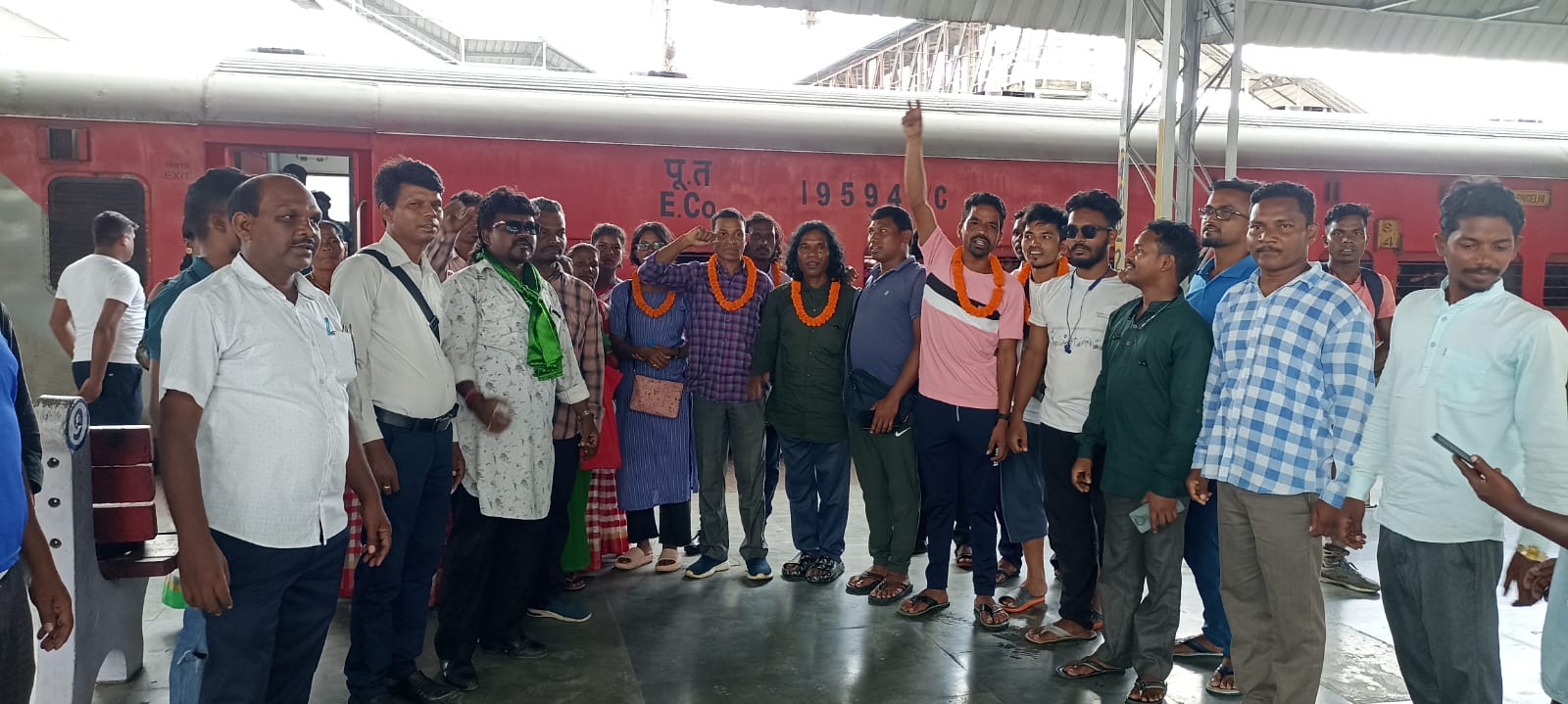 इस दौरान जोरोंग जीत, जोरोंग जीत, हो हयम जोरोंग जीत। बिरसा मुंडा जोरोंग जीत, सिद्धु कानू जोरोंग जीत, पोटो हो जोरोंग जीत, लाखो बोदरा जोरोंग जीत के नारे लगाए गए। आंदोलनकारियों को जलपान हेतु बिस्कुट, पानी व चूड़ा आदि देकर दिल्ली के लिए विदाई दी गई।