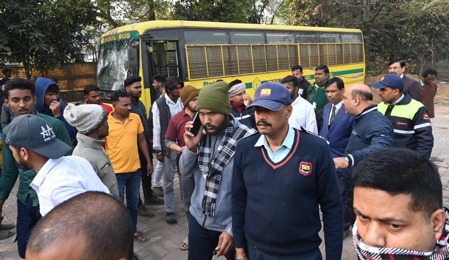 इंस्पेक्टर श्री कुमार ने लोगों को समझाने का प्रयास किया. स्थिति को देखते हुए स्थल पर बीएस सिटी थाना इंस्पेक्टर सुदामा कुमार दास व सेक्टर 6 थाना इंस्पेक्टर संगीता कुमारी पहुंची. इसी बीच आक्रोशित लोगों का एक दल सेक्टर 4 डीपीएस स्कूल के बस पडाव में प्रवेश किया. पडाव में खडे एक स्कूली बस के शीशा को क्षतिग्रस्त कर दिया. पुलिस ने भीड का समझा कर शांत किया. जांच के क्रम में पता चला कि धानेश्वर को टक्कर मारनेवाली बस (जेएच09एआर-0025) डीपीएस सेक्टर पांच में आउटसोर्सिंग के तहत चलती है. इसके बाद सेक्टर चार थाना ने सेक्टर छह थाना के सहयोग से बस को सेक्टर पांच डीपीएस से जब्त कर सेक्टर चार थाना में लाकर रखा. साथ ही चालक को भी हिरासत में लिया.